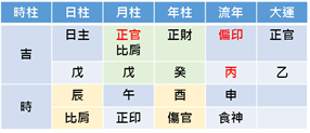 今年丙申年,丙火是他的【偏印】,丙火生戊土,因此原先【戊癸合】不了